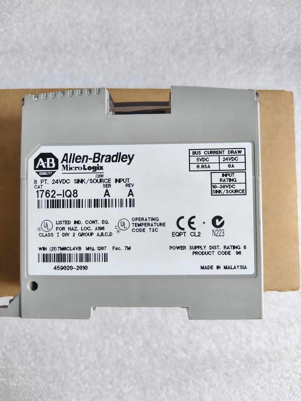 ALLEN-BRADLEY 1762-IQ8 ALLENBRADLEY 1762IQ8 MICROLOGIX 8 PT 24 VDC SINK/SOURCE INPUT MODULE
