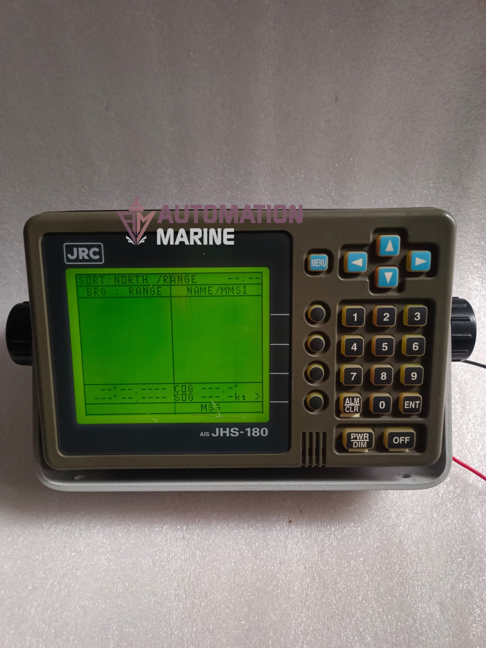 MAKE :- JRC RADIO CO.,LTD \nPRODUCT :- AUTOMATIC IDENTIFICATION SYSTEM ( AIS ) \nMODEL :- AIS JHS-180 \nPART NO :- NCM-722 \nSUPPLY VOLT :- 24V DC \nMADE IN :- JAPAN \nCONDITION :- USED WORKING TESTED OK ( AS PER PHOTOS & VIDEO ) \nSHIPPING :- FREE & FAST ( DHL ) \n