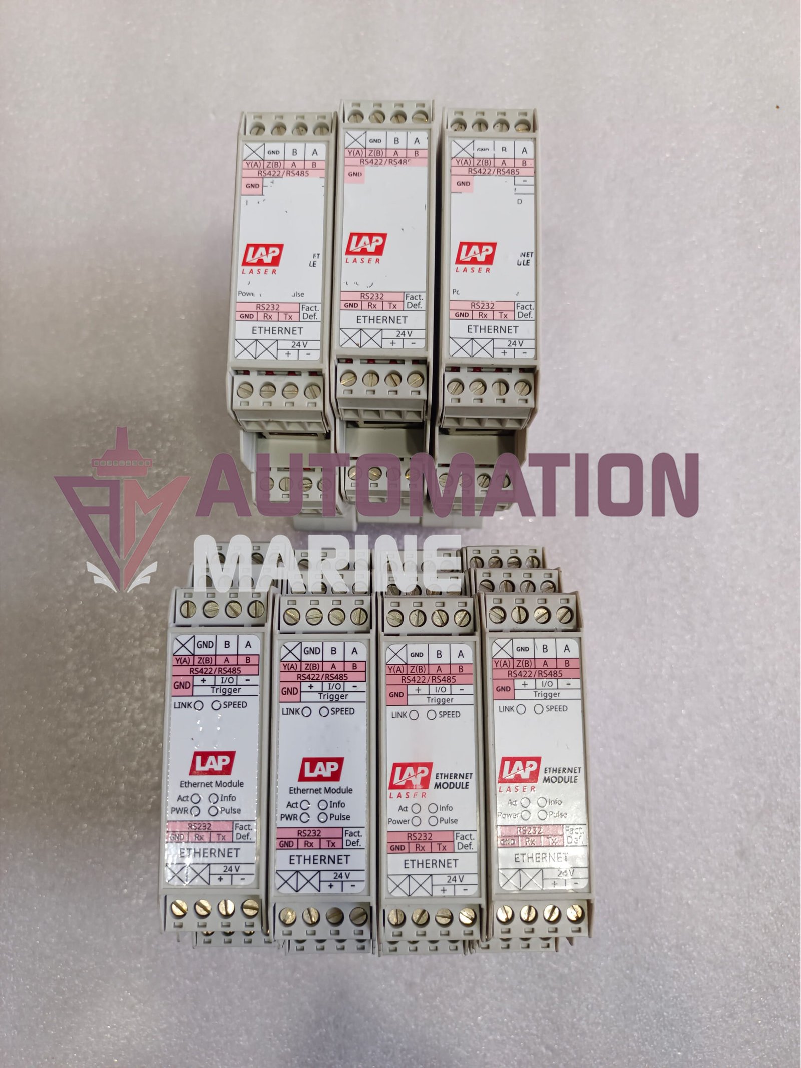 SELL FOR LOT 7QTY ONLY 999$ FREE SHIPPING \nMAKE :- LAP-LASER \nPRODUCT :- ETHERNET MODULE \nMODEL NO :- RS485-ETHERNET GATEWAY \nPART NO :- 0007608-0001 \nMADE IN :- FRANCE \nCONDITION :- USED WORKING TESTED OK ( AS PER PHOTOS & VIDEO ) \nSHIPPING :- FREE & FAST